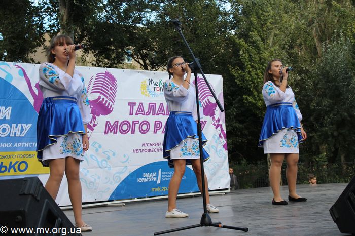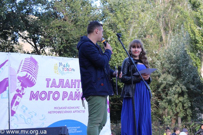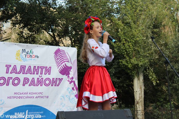 На Новом Мелитополе талантливых исполнителей оказалось не меньше, чем в авиагородке. Сегодня перед многочисленной публикой с показательными номерами выступили 27 участников. Каждый старался донести до зрителей ту частичку себя, которую вложил в свой номер. Одни участники исполняли сольные песни, другие читали стихотворения. Многие из произведений носили украинский характер. Проявили желание принять участие в конкурсе и ребята из танцевального коллектива студии современного танца «Карамель». Восточным танцем заворожила присутствующих Элеонора Сидоренко.