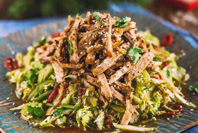 3. Чили измельчить тонкими кольцами, порвать мелко пекинку.