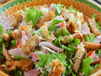 3. Смешать салат с майонезом, при подаче дополнить гренками.