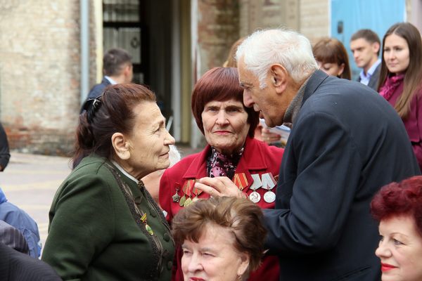 Здесь для заслуженных мелитопольцев был организован концерт. Поздравить их с праздником пришли представители местного самоуправления.