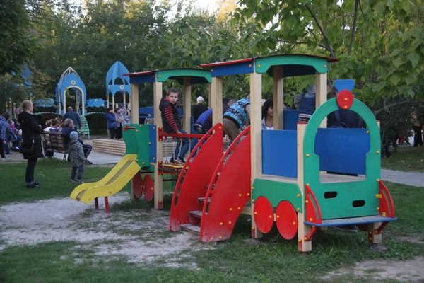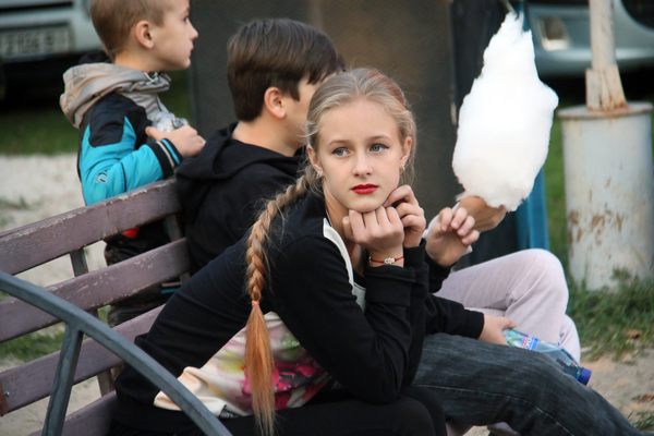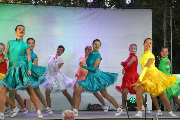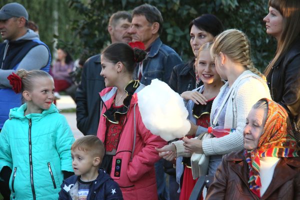 Рядом со сквером расположились торгующие (в основном продавали шашлыки и сладости). Немало аттракционов для детей. Им праздник интереснее всего. И маленьких зрителей в начале праздника достаточно много. Позже подтягиваются и взрослые.