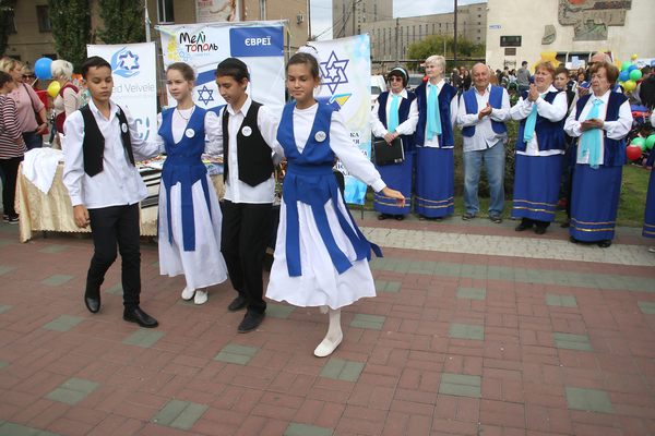 А пока идем к веселому хороводу. Это члены еврейской общины устроили танцевальный флешмоб. Простые движения могут повторить все гости праздника. Что самые смелые и делают.