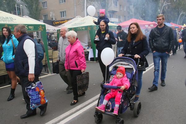 С самого утра часть ул.Героев Украины и проспекта Б. Хмельницкого перекрыта. Здесь работают три тематических локации: Экспо-простор "Мелитополь учебный, промышленный, деловой", "Территория вкусной еды" и большая праздничная ярмарка "От местного производителя".