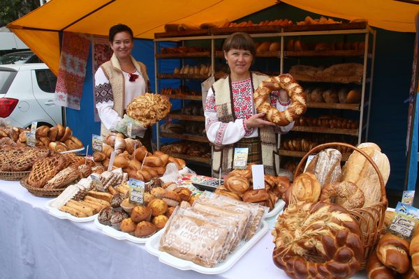 Вот торгуют вкуснейшими хлебобулочными изделиями ТМ «Лидер». Хлеб, булочки, круассаны. Особое внимание в день рождения города прянику с надписью «Мелитополь».