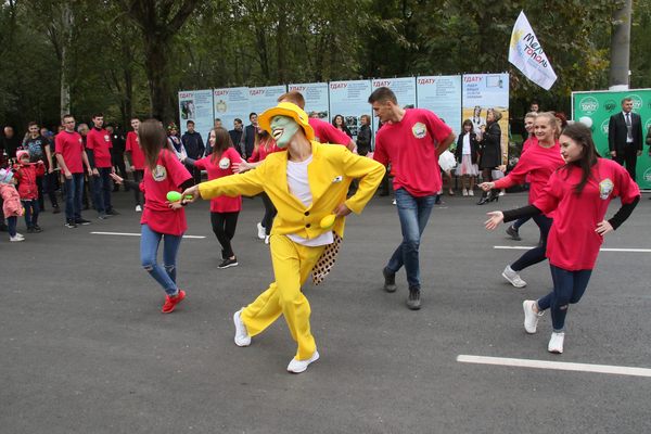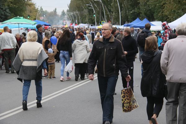 Вдоль проезжей части палатки и столики. Каждое предприятие, учебное заведение, каждый участник выставки постарался как можно лучше презентовать себя. Музыка, яркие фотозоны, интересное оформление выставочного места. Очень многие раздают рекламную информацию, многие обещают скидки. Все с радостью приглашают сфотографироваться и хвалят свой товар.