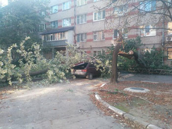 В Днепровском районе города дерево сломалось и рухнуло на автомобиль, который находился под ним.