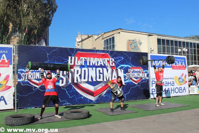 На пути команд к победе стояло три упражнения. Первым была эстафета оверхед: выполняли его три участника команды, у каждого из которых было задание поднять один из элементов. Это были лог-гриф - поднятие бревна весом 128 грн., акселя также весом 130 кг и поднятие кеги весом 100 кг. За 60 секунд нужно было выполнить эти упражнения максимальное количество раз. По окончанию времени результаты всех троих участников суммировались.
