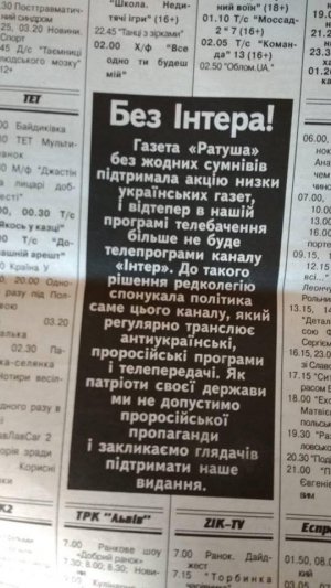 Без Интера: газета "Ратуша" отказывается печатать программу телеканала