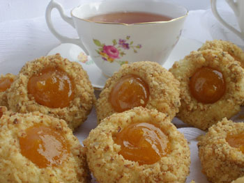 Вкусное, рассыпчатое, песочное, с прекрасной серединкой из варенья и хрустящей ореховой посыпкой. Совершенно простое в приготовлении, но при этом очень и очень красивое, броское, аппетитное.