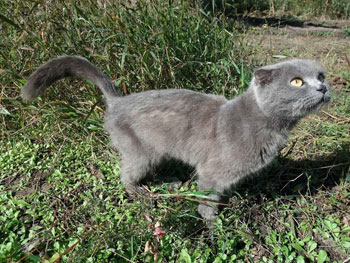 Приблудился кот-шотландец, очень истощенный, но красавчик.