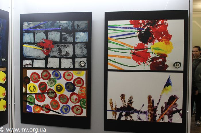 Все представленные экспонаты – это дипломные работы студентов. Примечательно, что почти все они выполнены женской частью студенческой молодежи и лишь несколько работ мужчинами. Тему Майдана ребятам предложил профессор Виталий Шостя. Стоит отметить, что такая идея профессору пришла через полгода после утверждения тем дипломных работ. Менять темы – было рисковано и чревато последствиями. Однако студенты поддержали спонтанную идею наставника, так как, по словам В. Шости, принимали участие в событиях Майдана, помогая в бытовых вопросах его активистам.