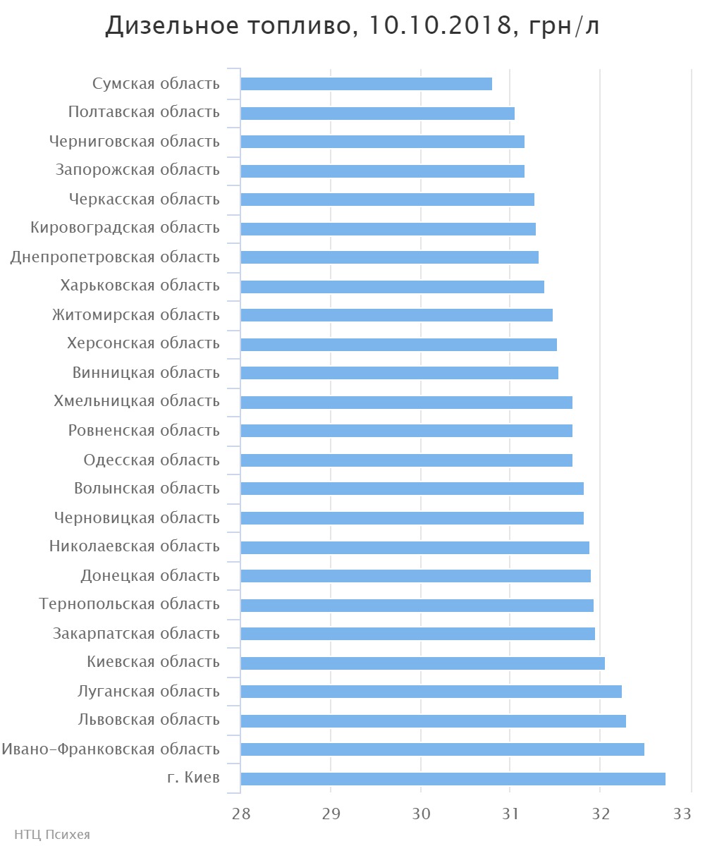 10 октября 2018 года практически во всех регионах Украины наблюдался рост цен на ДТ Евро. В Запорожской области был значительный рост цен на этот вид топлива. За сутки подорожание в среднем составило 32 коп/л.