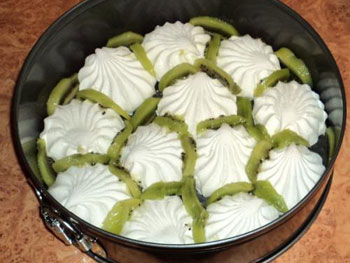 4. Киви очистите и нарежьте, заполните пустоты между зефиром.