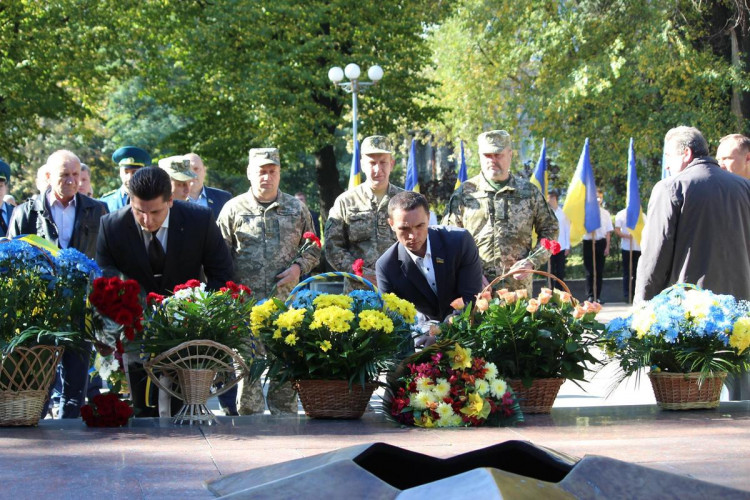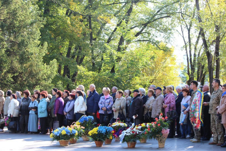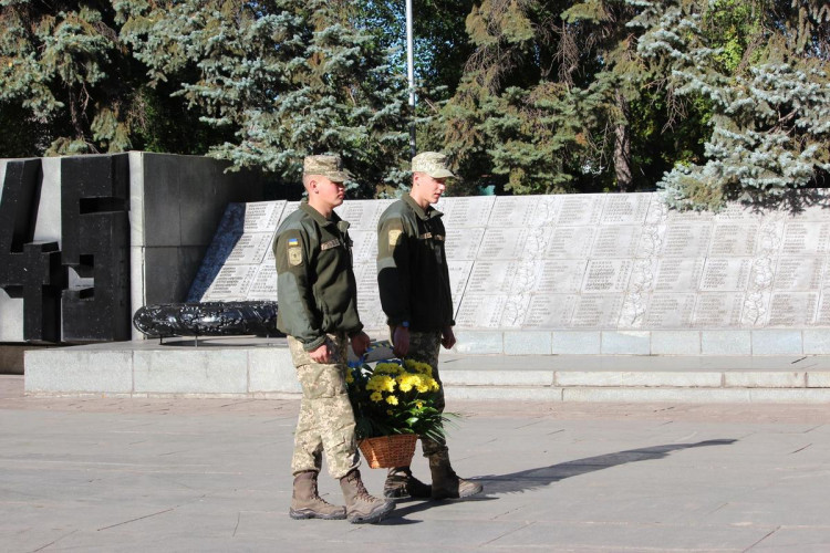 Память воинов, погибших освобождая Запорожье, а также военнослужащих, погибших защищая Украину в ходе АТО, почтили минутой молчания. По окончании мероприятия участники митинга возложили цветы к братской могиле и монументу.