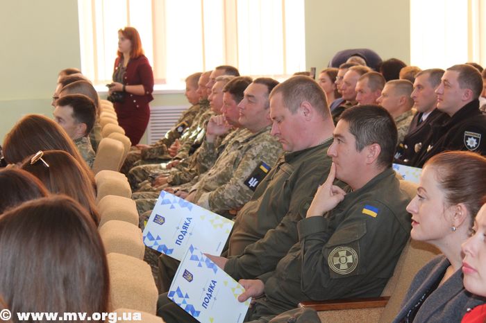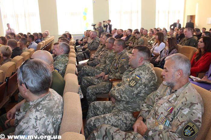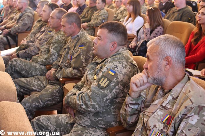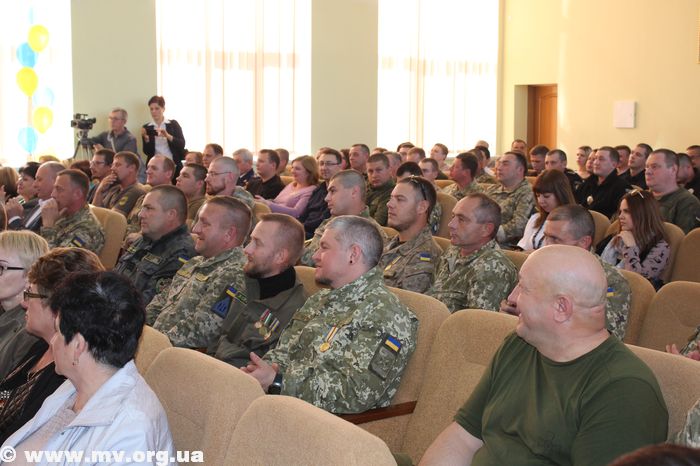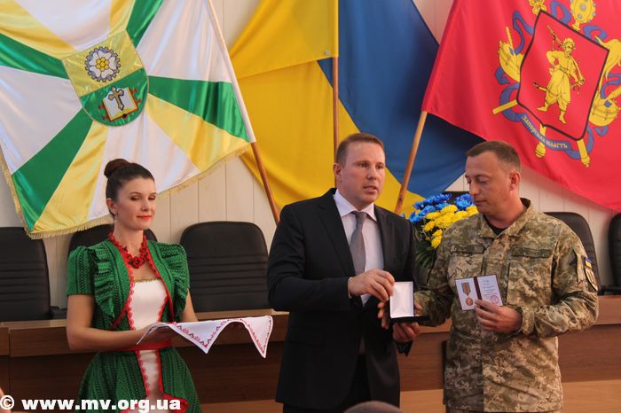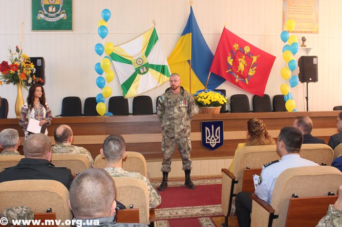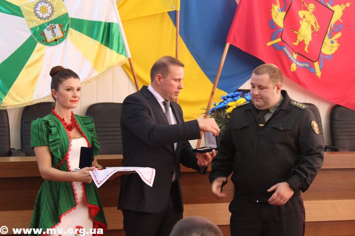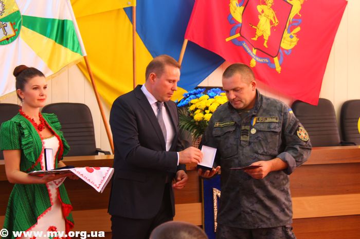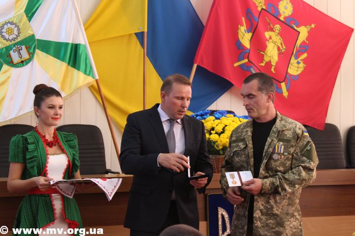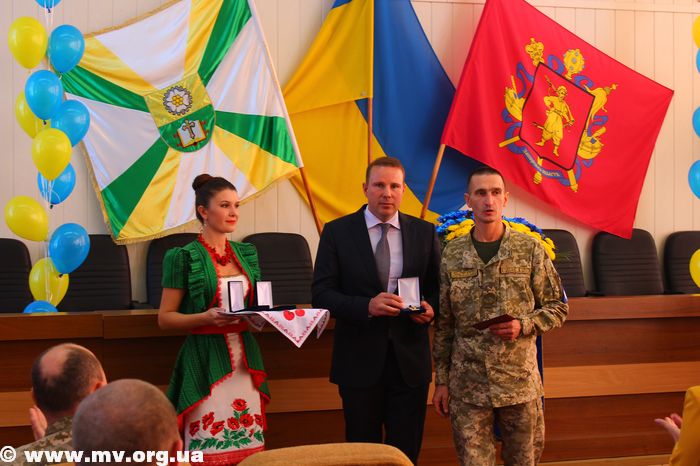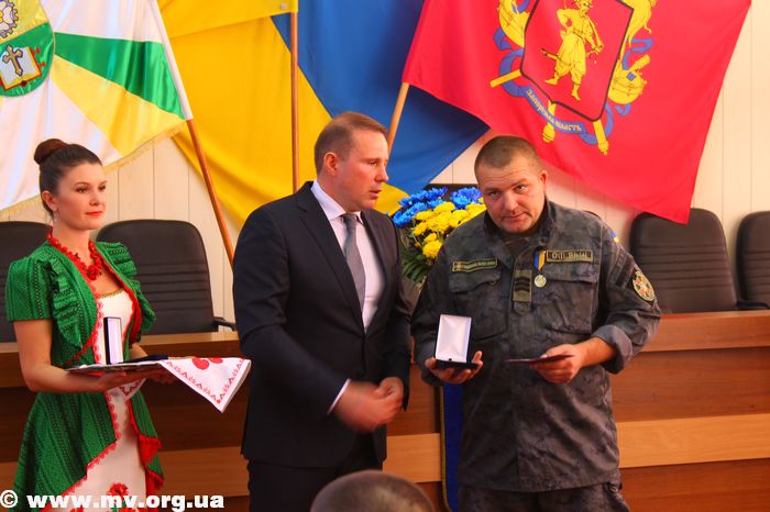 В торжественной обстановке медалями "Защитник Украины" были награждены: Алексей Водяницкий - прапорщик А 3840, Олег Снопиков - член ОО "Союз участников АТО", Александр Прохоров - член Союза участников АТО, Павел Терехов, командир роты в/ч 3033, Алексей Скиба, военнослужащий ВСП.