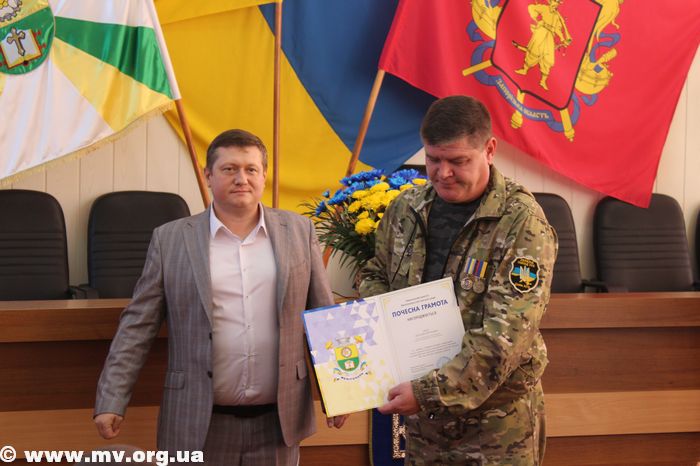 Почетные грамоты Мелитопольского горсовета получили Виталий Макаров, в/ч 3033, Виталий Муц, член "Союза участников АТО", служащие в/ч А 3840 Антон Свитко, Андрей Махиня, полицейские Виктор Грижинку, Максим Соболь, Александр Брюханов, Игорь Билан, Виталий Юрченко.