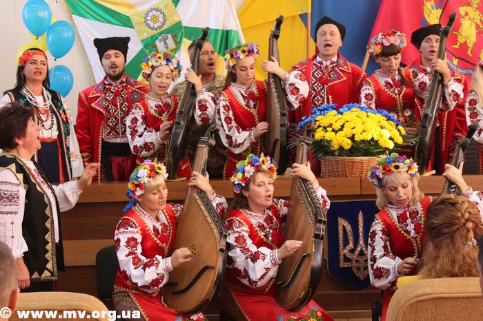 Собравшихся поздравлял народный ансамбль бандуристов "Джерела", а бард Виталий Лиходед исполнил песню, специально написанную по случаю Дню защитника.
