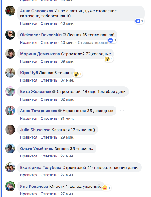 В Фейсбуке некоторые пользователи жалуются, что пока батареи холодные, другие хвастаются, что с теплом уже последние пару недель: