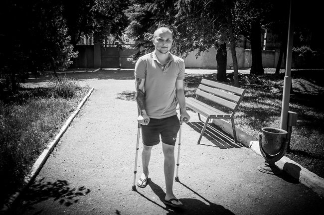 Василий Наконечный, красивый молодой парень и ему всего лишь 24 года. О войне, ранении рассказывает с улыбкой, так, словно, не из АТО раненный вернулся, а съездил с пацанами на шашлыки. В своем видимом легкомыслии он пытается показаться проще, чем есть на самом деле. В Васе есть самоирония, беспечность и нерастраченный пыл молодости. Он говорит негромко, отрывисто.