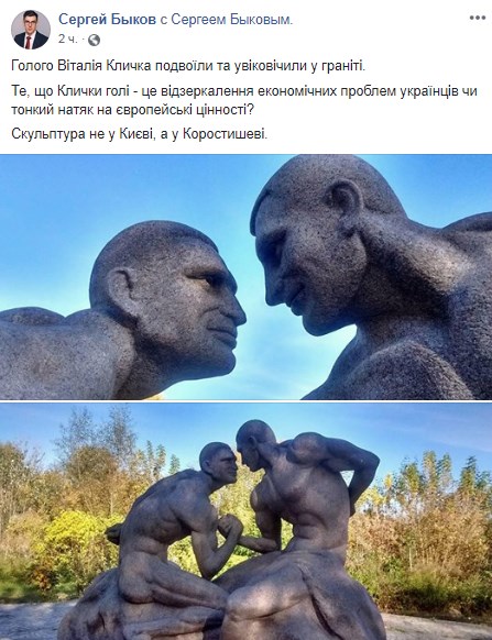 В Коростышеве установили гранитную скульптуру голых братьев Кличко(ФОТО)