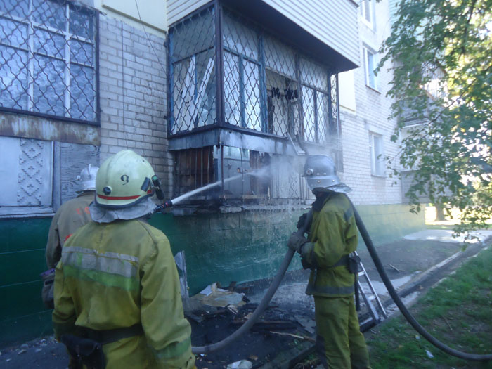 Сегодня в девятиэтажке на улице Ломоносова загорелся балкон квартиры, расположенной на первом этаже. В этот момент проживающие в квартире люди были на работе и спасателей вызвали соседи.