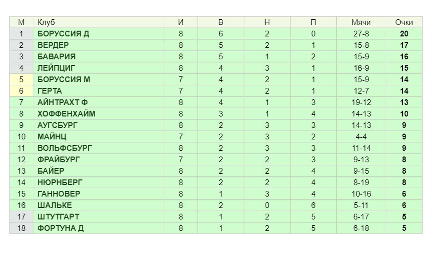 8-й тур чемпионата Германии по футболу: расписание и результаты