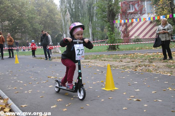 Для участников в возрастной категории старше четырех лет трассу усложнили фишками, которые нужно было объезжать. Соревнования таким образом получились не только на скорость, но и на мастерство вождения. На разных трассах соревновались «водители» велосипедов и самокатов.