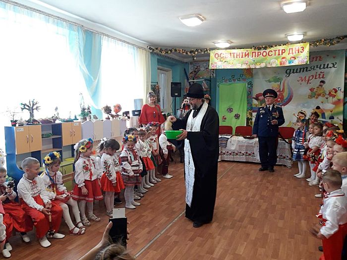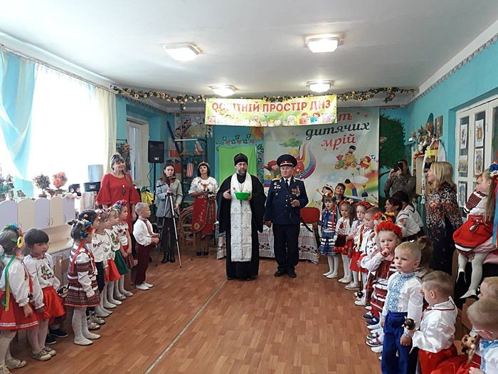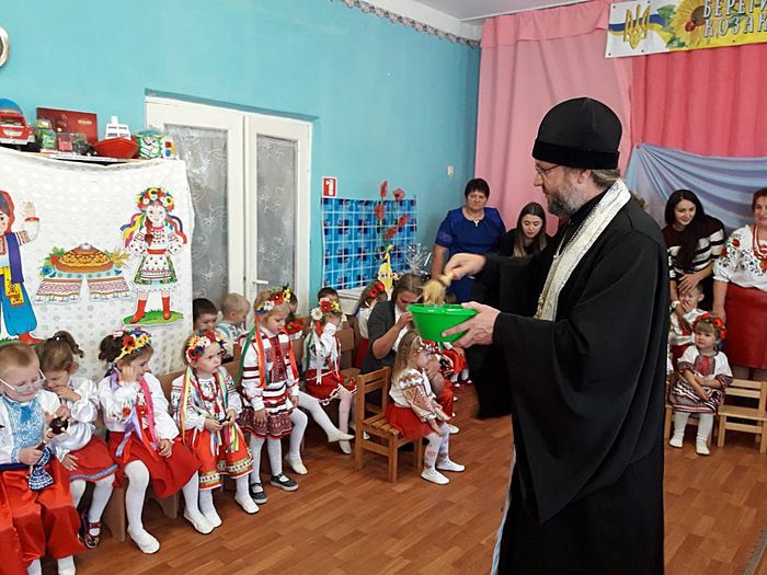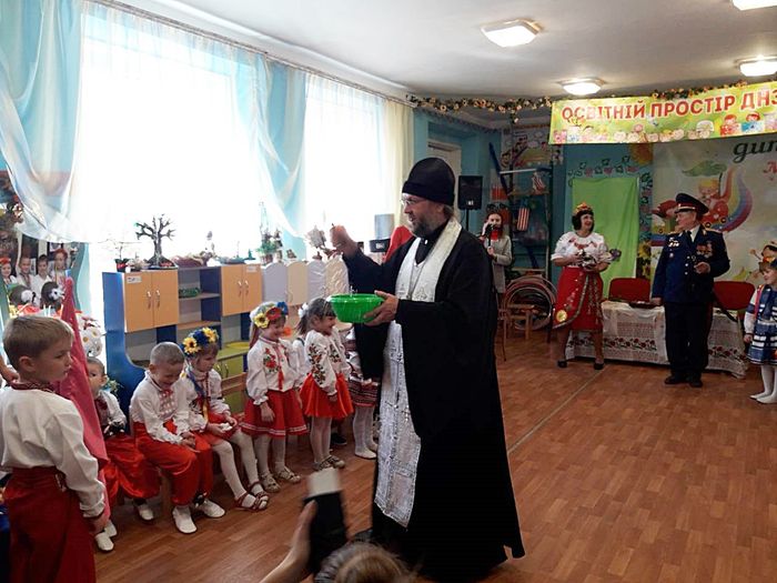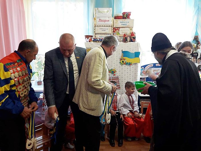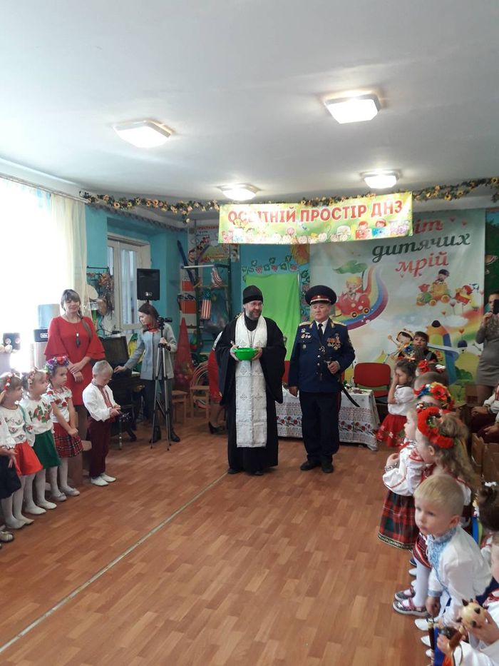 В детском саду уже не один год существует детский казацкий курень. И уже стало хорошей традицией ко Дню казачества в Украине посвящать детвору в казачата. На празднике присутствовали почетные гости – старейшина Мелитопольского районного куренного полка Геннадий Хохлов, заслуженный гиревик Мелитополя Сергей Кубрак, депутат Мелитопольского районного совета Валерий Аненко, настоятель храма в честь Казанской иконы Пресвятой Богородицы игумен Макарий (Шадрин).