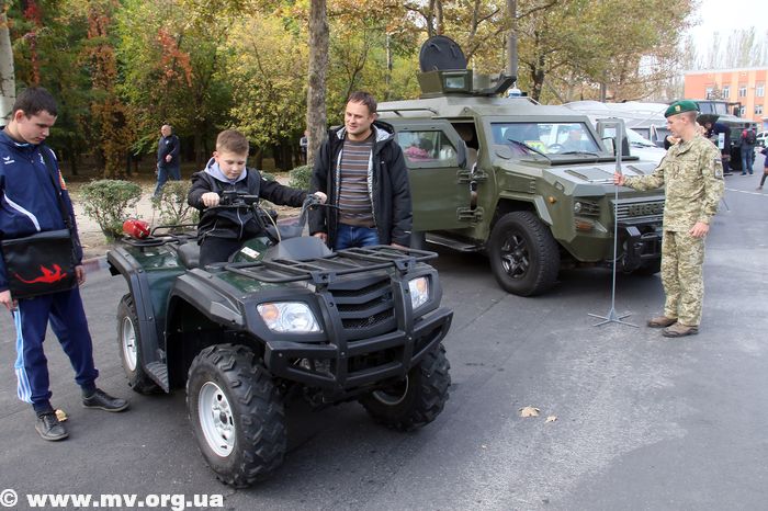 Напомним, она проходила у входа в парк им. М. Горького со стороны Братского кладбища. По задумке выставка должна была начаться в 9.00, но к назначенному времени прибыл только КрАз Нацгвардии. Пограничники опоздали, но все же исправились. Выставка продлилась до 14.00