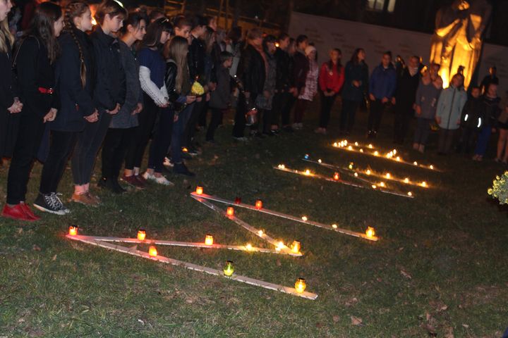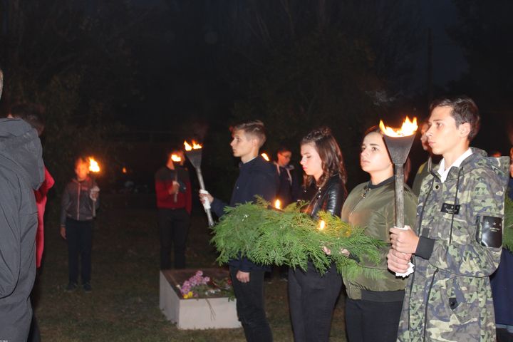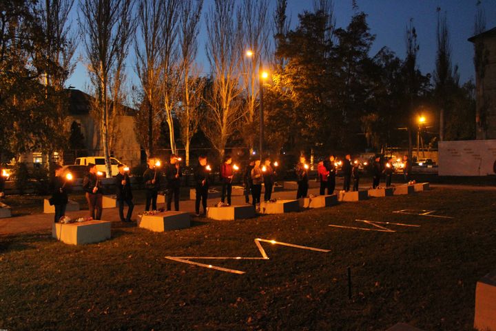 Стартовало шествие возле Дворца детского и юношеского творчества. Его воспитанники вынесли в голову колонны знамя Дворца творчества, гирлянду и венки памяти, цветы. Впереди колонны шли факелоносцы с зажженными факелами. Постепенно к колонне присоединялись неравнодушные горожане, которые чтят память солдат, освобождавших Мелитополь.