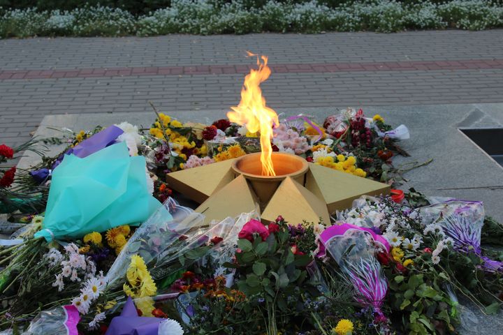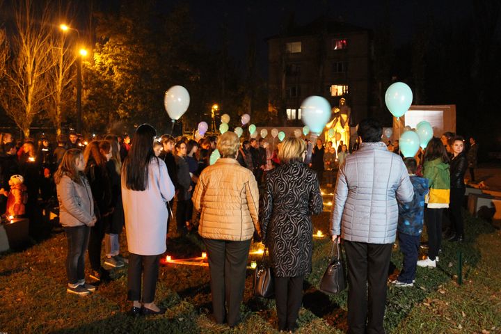 В память о погибших воинах присутствующие возложили цветы и оставили свечи у могил солдат, а в небо отпустили воздушные шары, которые символизируют мир.