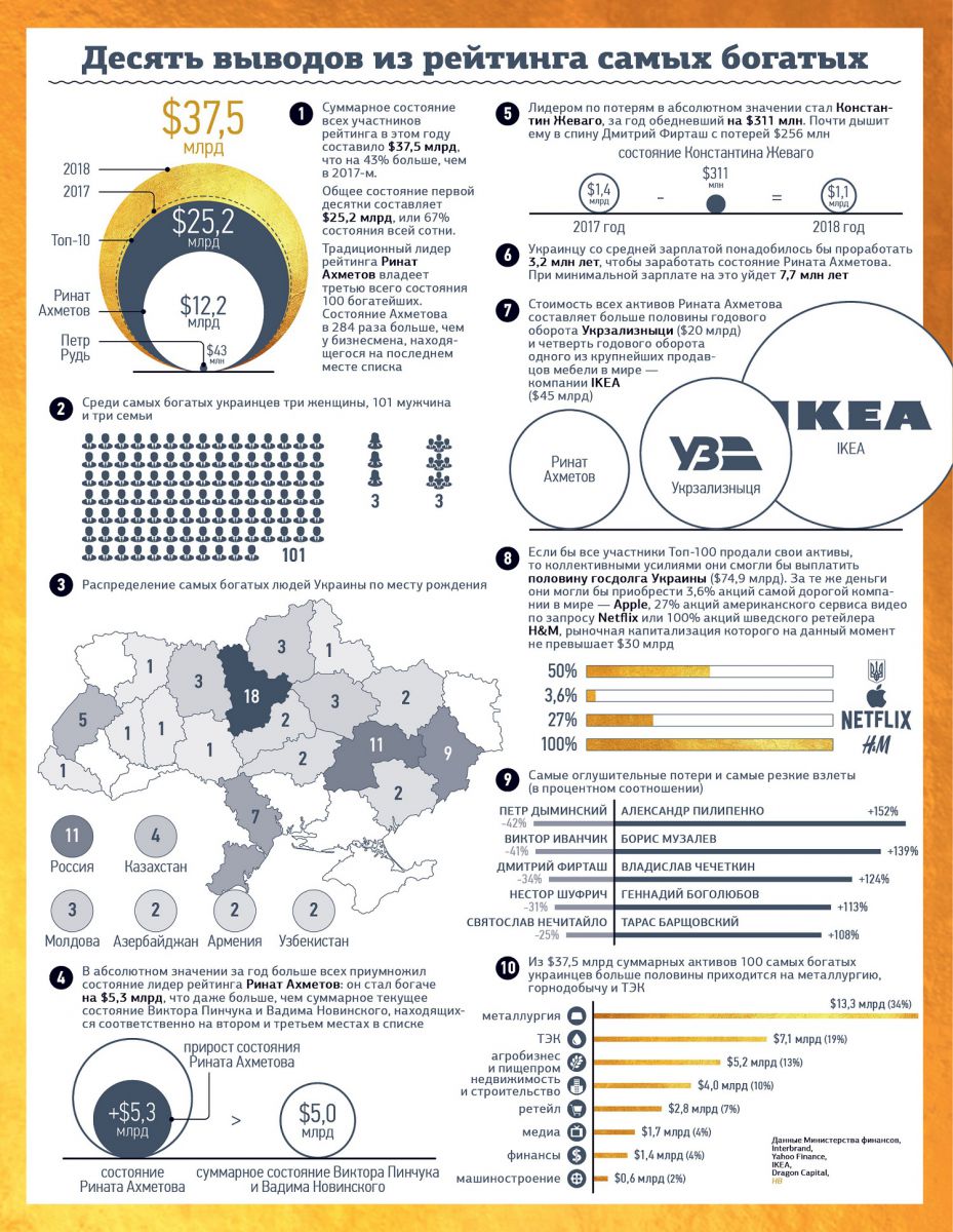 Немного поможет отечественным супербогачам и родная страна – по прогнозам, ее экономика продолжит показывать рост. В Нацбанке предполагают, что уже по итогам этого года ВВП страны увеличится на 3,4 %, а за 2019‑й этот показатель покажет еще +2,4 %. Это естественным образом отразится и на состоянии богатейших украинцев. "Потому что они и есть украинская экономика", – резюмирует Андрей Беспятов, управляющий директор Dragon Capital.
