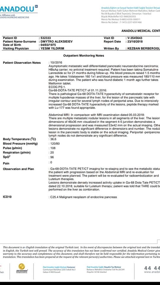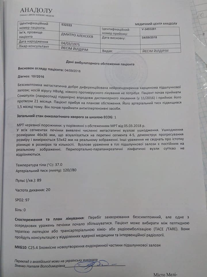 ****документы по болезни - на фото. Заключение ПЭТ КТ от 23.10.2018 на английском, мы только сегодня вернулись из Турции, перевод на украинский ещё не сделали. Диск с ПЭТ КТ скину на почту, кому нужно.
