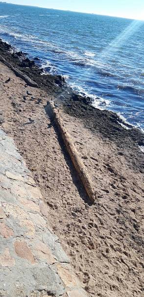 Прохожие в районе Приморской площади обратили внимание на необычное бревно, выброшенное волнами на берег. Вполне возможно, что это мачта затонувшего военного фрегата.