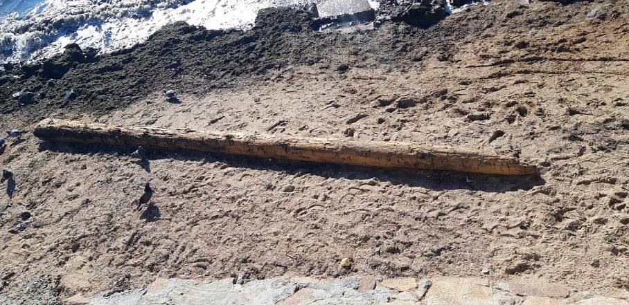 «Во время прогулки по набережной обратил внимание на необычное бревно. Визуально это мне представляется деревянной мачтой со старинного фрегата. Судя по массивности мачты, это было, скорей всего, военное судно. Может, где-то относительно недалеко на дне лежат и фрагменты корабля с пушками…», - сообщил очевидец.