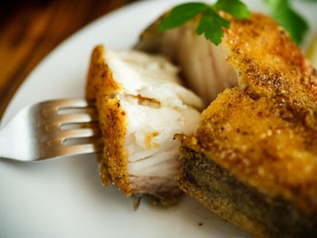 Подавать готовую рыбу можно с гарниром из картофеля.