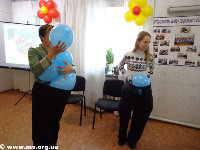После торжественной части начались веселые конкурсы. Участники должны были своего подопечного одеть, причем одежду для конкурса выбрали смешную: длинные шарфы, яркие носки, панталоны и бюстгалтеры 15-го размера. Соцработники сначала неохотно выходили на сцену. Но когда "модели" уже были полностью наряжены, они даже раздеваться не хотели - так себе понравились в новом образе! Затем из социальных работников выбрали троих самых худеньких, одели их в брюки огромных размеров. Зал разделили на команды, они сообща надували шарики, с помощью которых "утолщали" худышек - наполняли шариками брюки. Изящная Инна Струкова "дополнила костюм" 11 шариками!