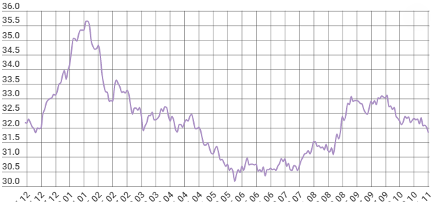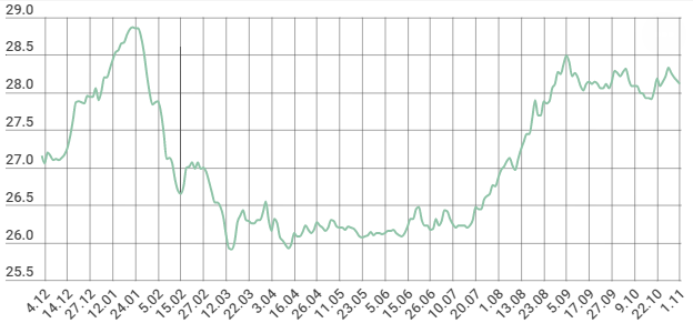 Национальный банк Украины установил официальный курс гривни в четверг, 1 ноября, по отношению к евро на отметке 31,82 грн/$.