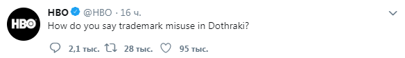 "Как сказать "неправомерное использование товарного знака" по-дотракийски?", - гласит твит.
