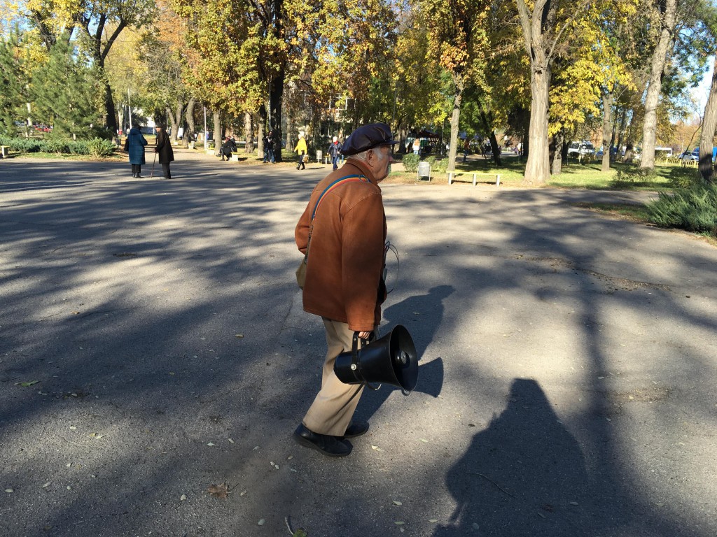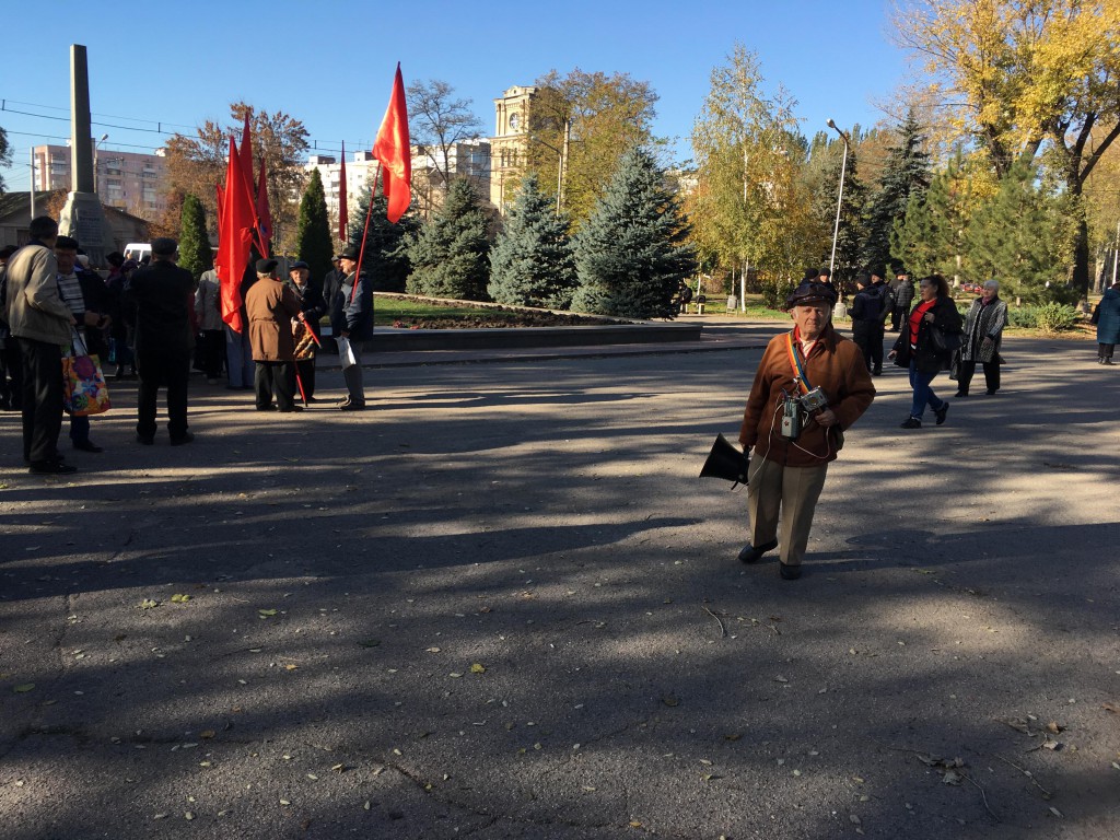 Запорожские пенсионеры все никак не могут смириться с деккомунизацией и каждый год устраивают митинг в честь Октябрьской революции.