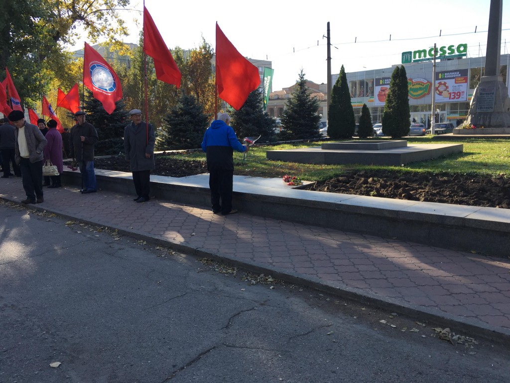 Так, сегодня, 7 октября, в Запорожье на площади Свободы собралось небольшое количество пенсионеров с красными флагами в честь годовщины Октябрьской революции.