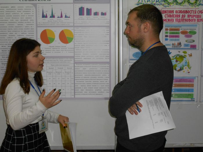 Защита работ проходит в секциях. Участники форума в той или иной секции размещаются вместе, расставляют свои стенды. Подойти посмотреть и поинтересоваться работой может каждый желающий, но главное, конечно, приход членов жюри. Как замечают мелитопольские участники, на защите работ, например, в Запорожье царит официальная обстановка, тогда как форум выглядит скорее как обмен опытом.