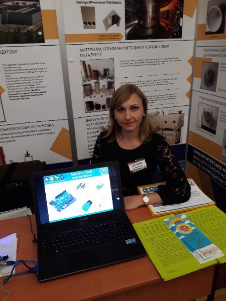 Кроме презентации проекта, Ю. Мельник провела мастер-классы по программированию плат Arduino для участников конкурса «Наука на сцене» и для детей-слушателей харьковской технической студии «Изобретатель» и их родителей.