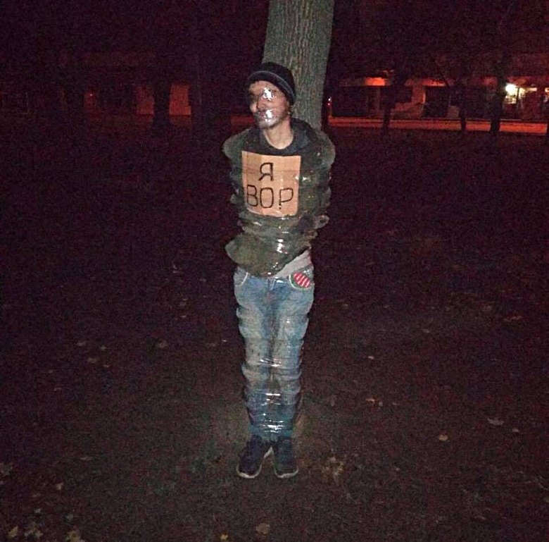 Как рассказал парень, его поймали неизвестные и привязали к дереву. Заявление в полицию потерпевший подавать не стал. По данным полиции, ранее он привлекался к уголовной ответственности за совершение краж.