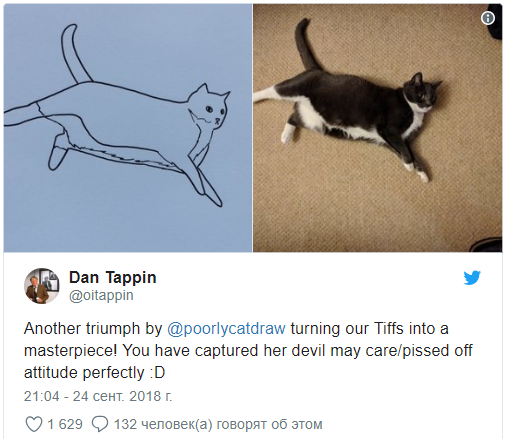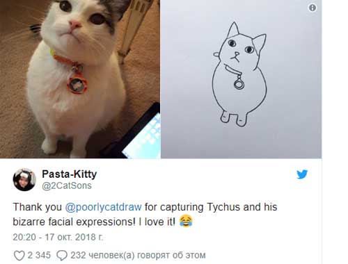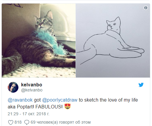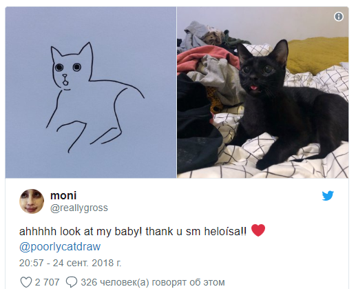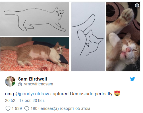 Грубые рисунки кошек создает бразильский художник по имени Хелоис. Владельцы животных с удовольствием публикуют картинки на своих страницах и благодарят их автора. Аккаунт @poorlycatdraw набрал более 188 тысяч подписчиков.