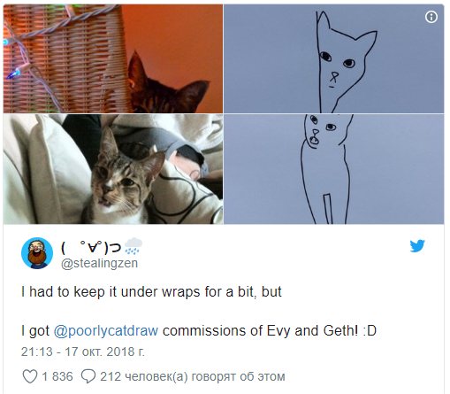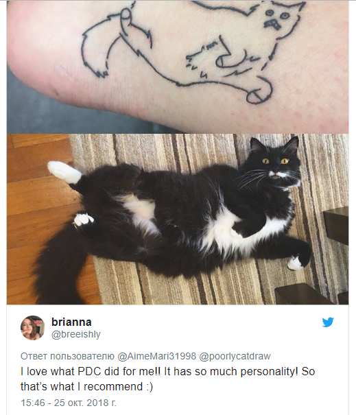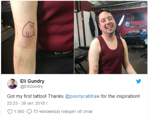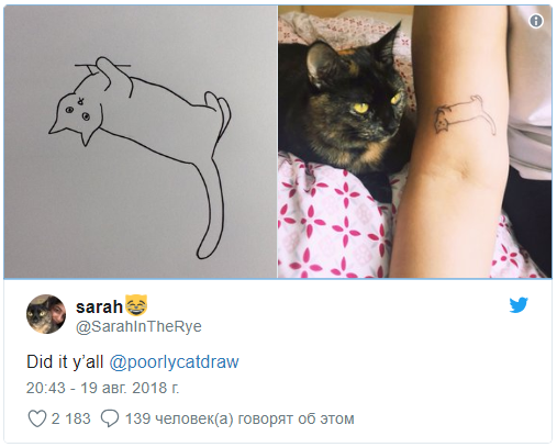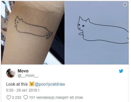 Пользователи Twitter начали публиковать в соцсети простые рисунки кошек. Изображения питомцев так понравились владельцам аккаунтов, что некоторые из них стали делать с ними татуировки.