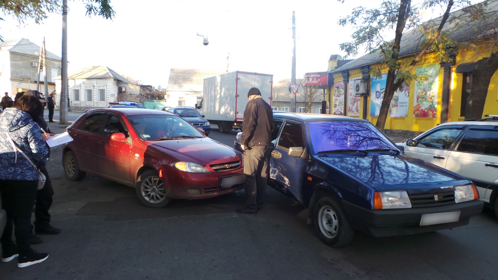На ул. М. Грушевского (бывш. К. Маркса), недалеко от пересечения с ул. Гетмана Сагайдачного (бывш. Фрунзе), произошло ДТП. Автомобиль «Шевроле» врезался в правый бок «ВАЗа».