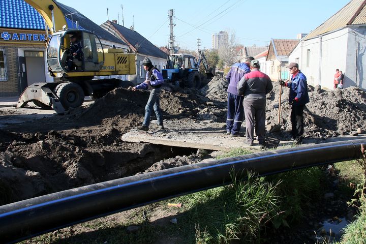 КП «Водоканал» приступил к масштабному ремонту водовода на ул. Костенко. Чтобы провести замену трубы, пришлось вырыть траншею вдоль всей улицы.