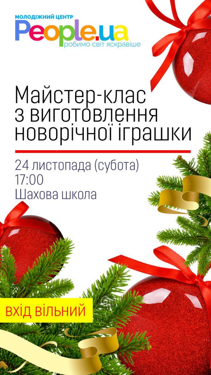 В субботу, 24 ноября, в Молодежном центре People.UA (Шахматная школа) состоится мастер-класс по изготовлению новогодних игрушек.