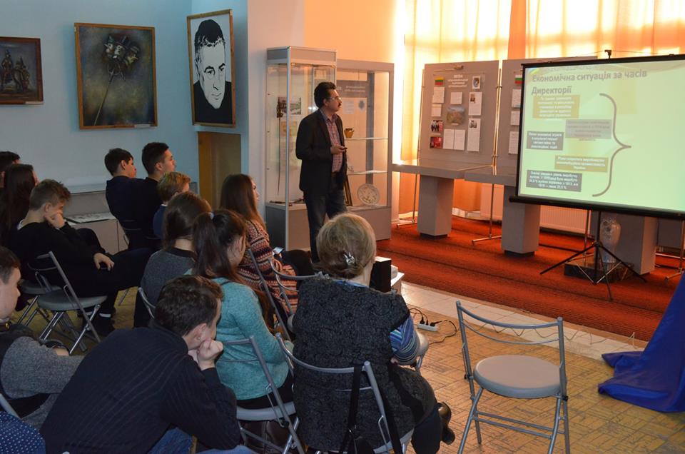 Лицеисты узнали о том, что Директория стала чрезвычайным органом власти в Украине, она была создана в ночь с 13 на 14 ноября 1918 г. блоком партий с социалистической ориентацией - Украинским Национальным союзом. Директория состояла из пяти человек: Афанасий Андриевский, Владимир Винниченко, Андрей Макаренко, Симон Петлюра, Федор Швец. Позже ее состав менялся.